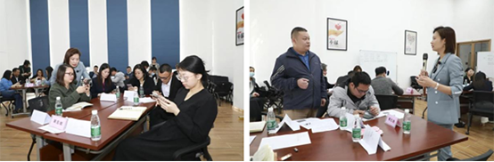 参训干部自由组合形成4个学习小组,在讲师的引导下围绕“老妇人与母鸡”、“泰勒与圆锹作业”“同事的指责”等典型管理案例进行理论剖析与交流。之后,参训干部在专业讲师的带领下进行了个人管理案例的总结输出,通过输入“明确目的、掌握实施、根据事实思考、决定实施方法、实施、确认“等思维模式,陆续输出了具代表性的“团队组建、团队效能提升、团队激励、销售开发、酒店筹建”等方面的管理案例,反思自己在管理行为中的改善点,实现管理经验的升华。